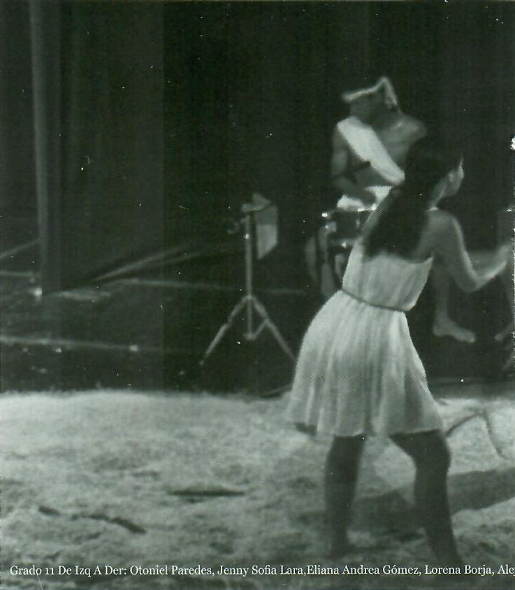 Ya en grado once (11°), el estudiante estaba en capacidad de proponer la partitura teatral de un personaje dramático, relacionar los diferentes lenguajes, teniendo en cuenta que la música enfatiza el sentido de lo sonoro, como lenguaje en relación con las dramaturgias del espectáculo teatral.